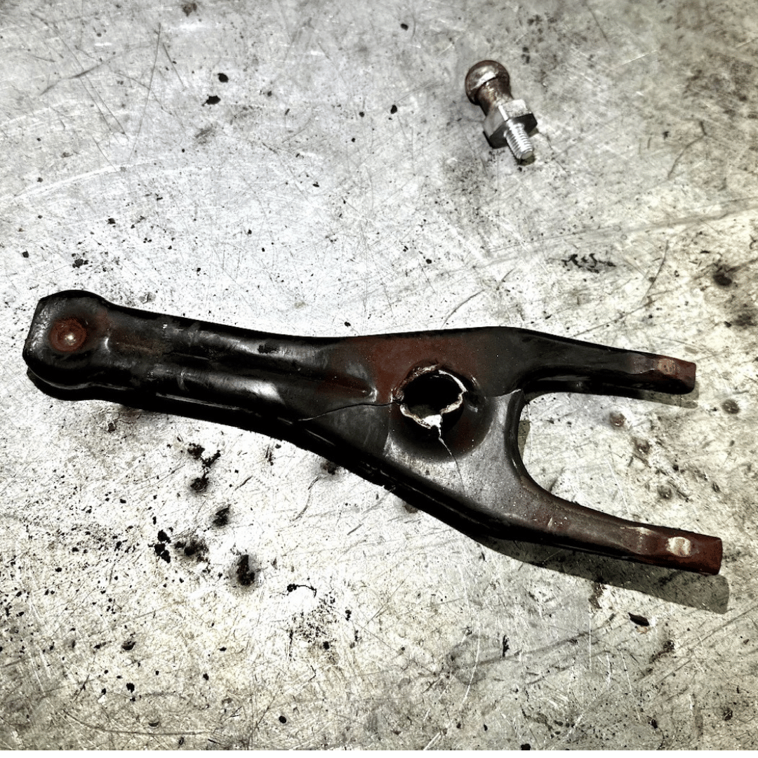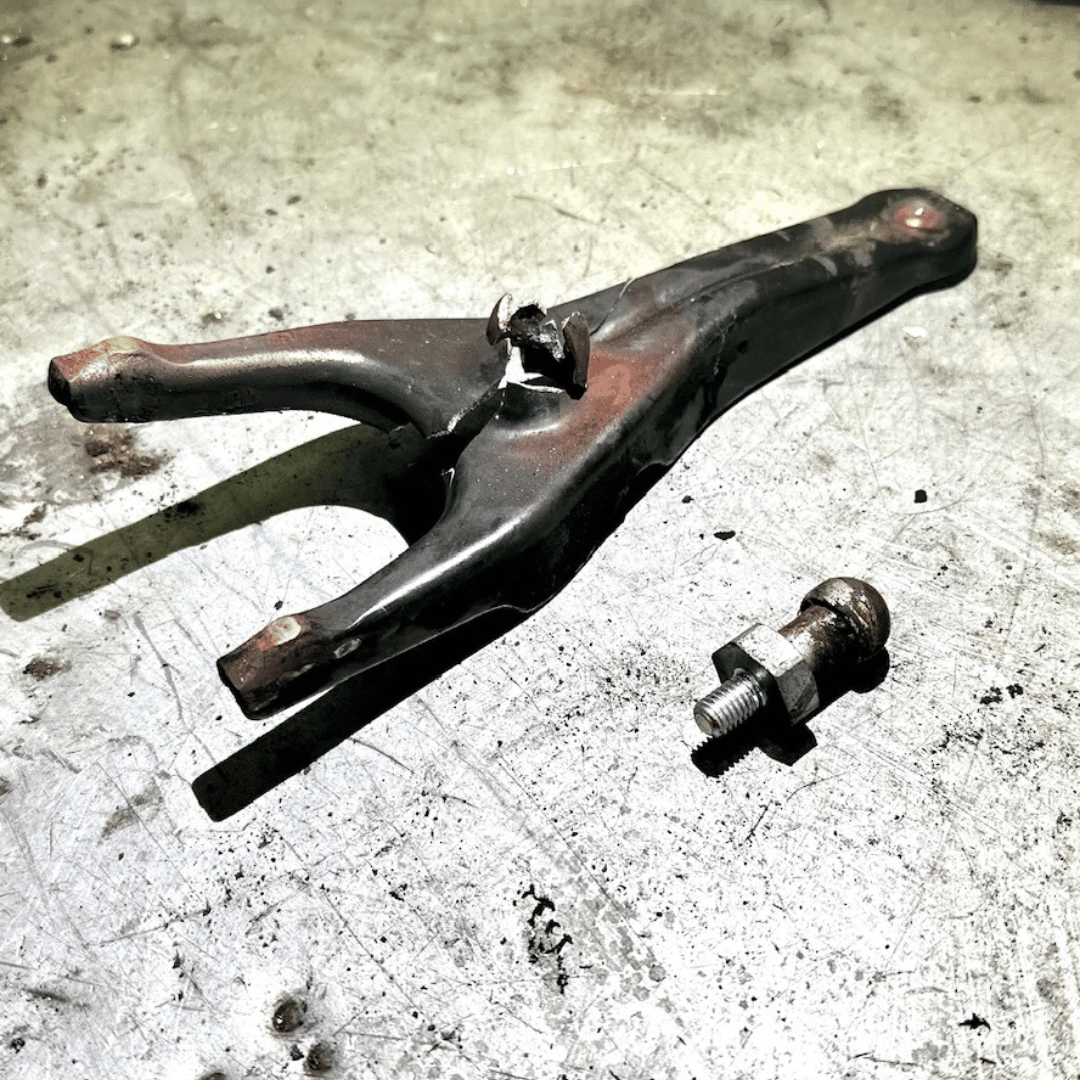 We upgrade with a billet clutch fork to prevent this type of failure.