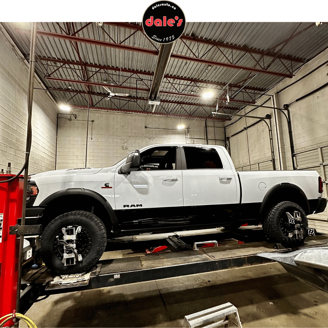 At Dale’s Auto Service, we go the extra mile to ensure your vehicle’s performance is nothing short of perfection. Even brand-new vehicles like the RAM 2500 may not roll off the assembly line with the exact wheel alignment you desire. That’s where our expert wheel alignment services come into play.