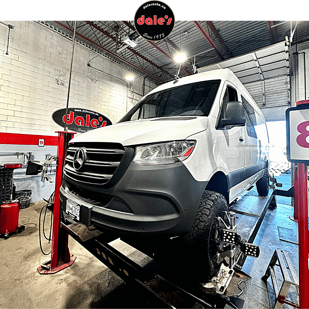 At Dale’s Auto Service, we’re always up for a challenge, and the 2023 Mercedes Sprinter provided us with an exciting one. Our latest project involved transforming this luxury van into a rugged and versatile off-road machine. How did we do it? By installing an Agile Off-Road Lift Kit!