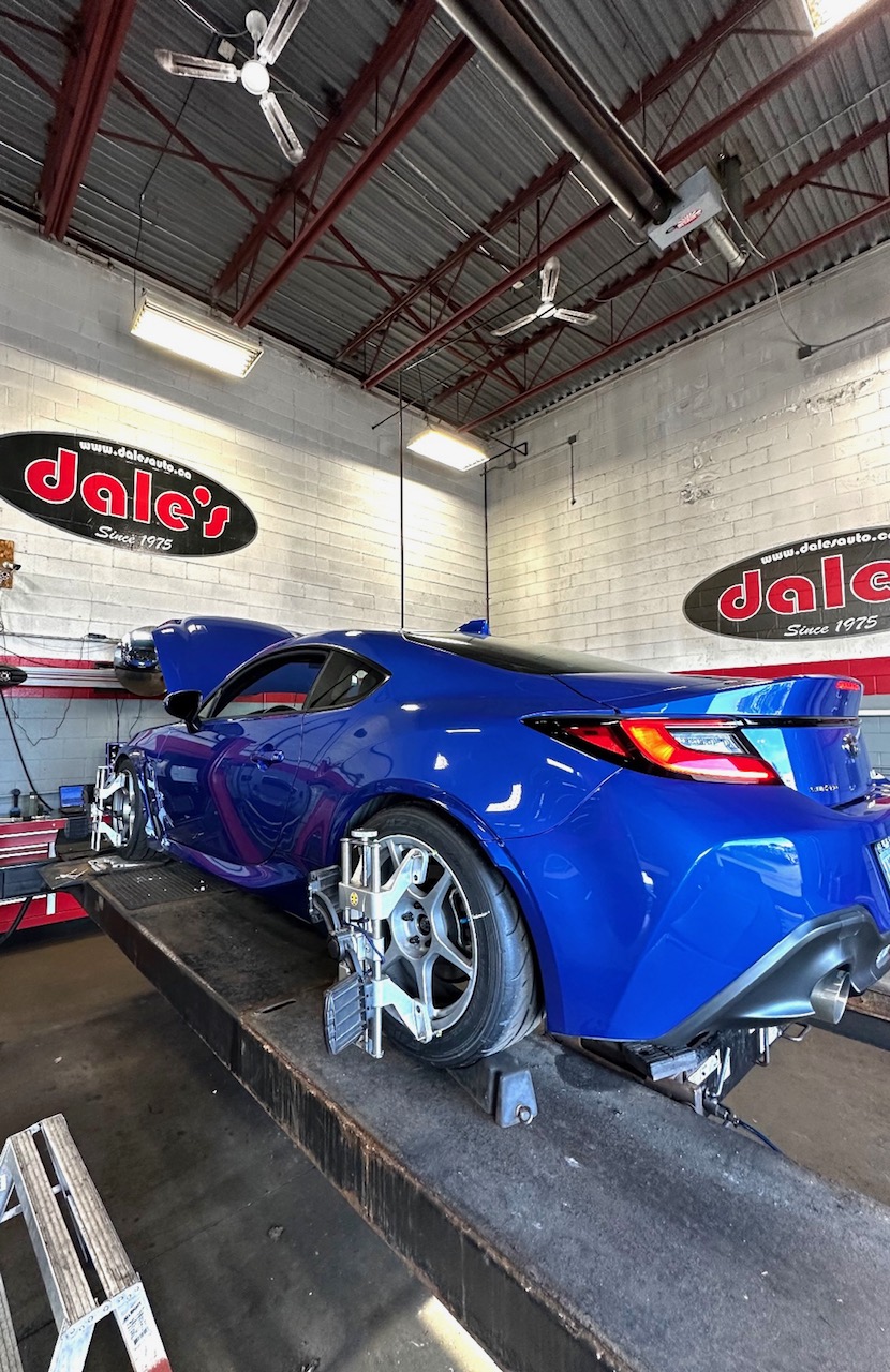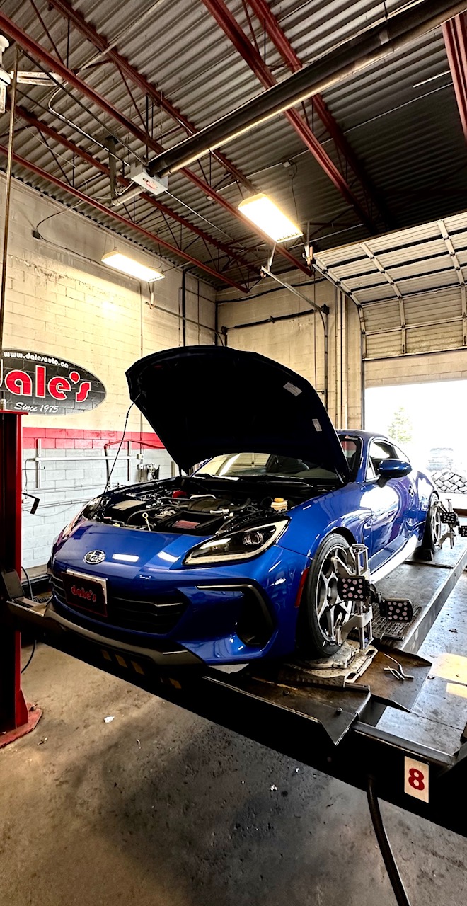 Subaru Brz in for a 4 Wheel Alignment | 604-530-9160 | Dale's Auto Service | Dales Auto Service 604-530-9160 | Auto Repair, Brakes, Tires, Wheel Alignment Service Near Me