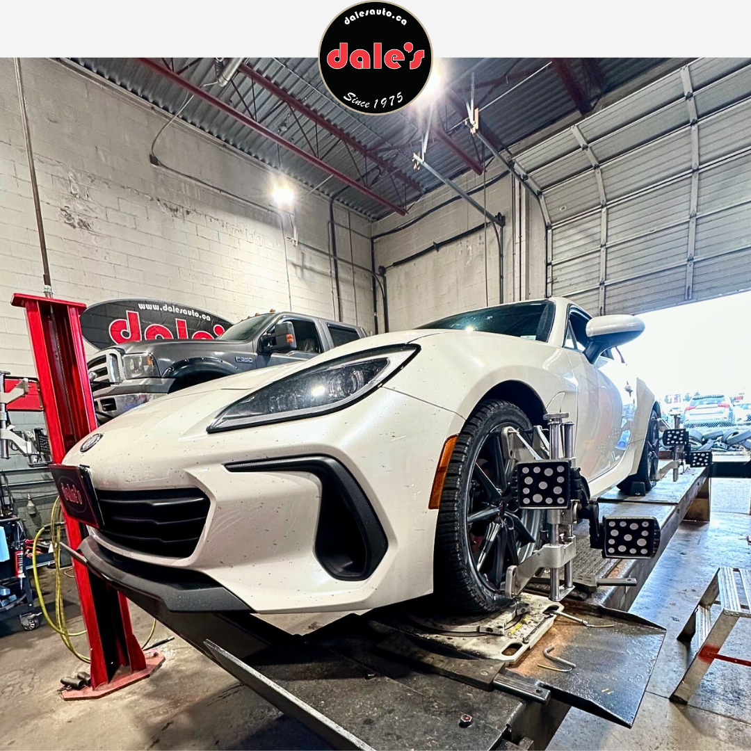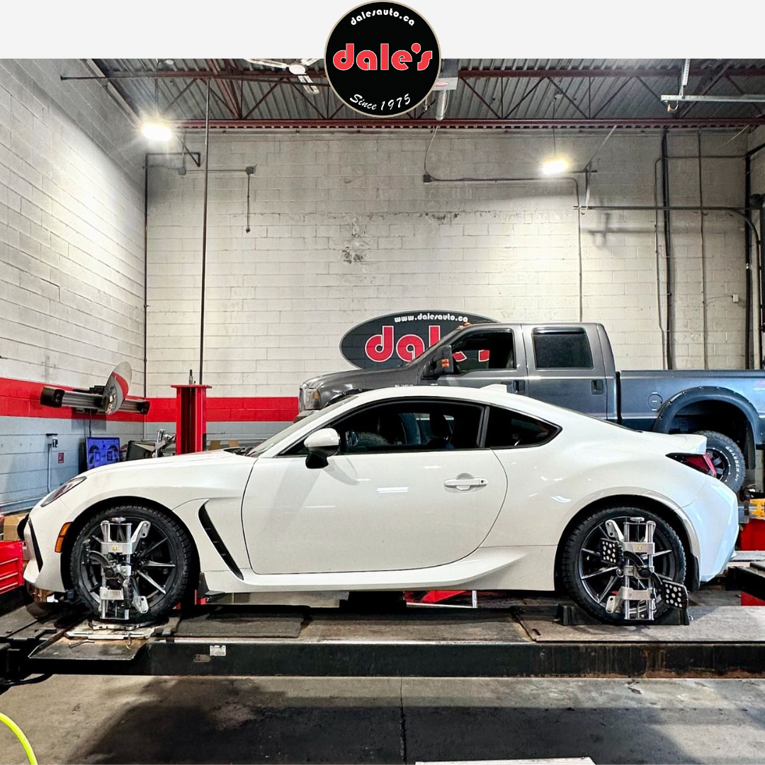 At Dale’s Auto Service, we’re providing expert care for a 2024 Subaru BRZ, starting with its first wheel alignment. Aligning a vehicle early on, especially performance models like the BRZ, is essential for keeping handling sharp and ride quality precise. As new suspensions naturally settle over the first few thousand kilometers, they can shift alignment slightly, impacting performance, safety, and tire wear.
